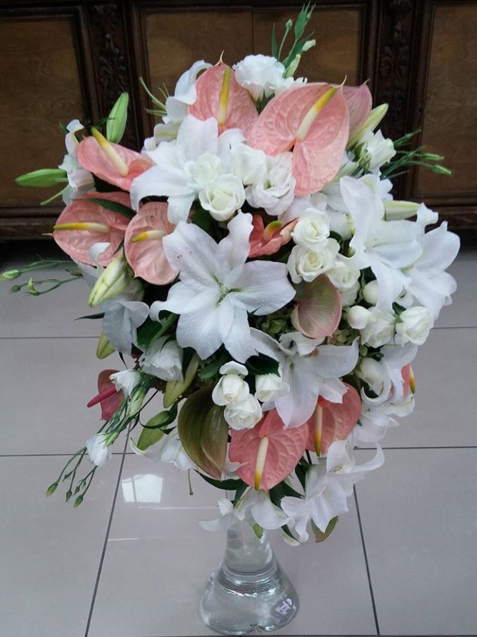 Fil ayağı cam fanus içine Lilyum, gül ve Anthorium dizaynı