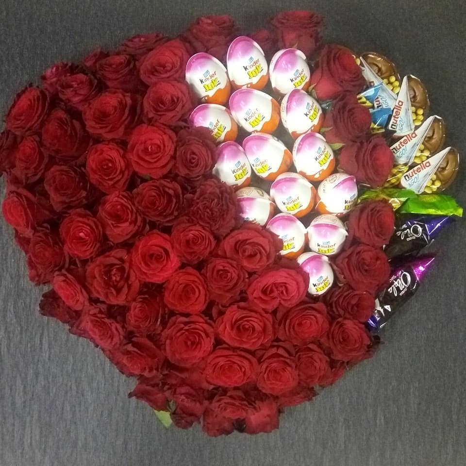 Kalp zemin uzerine sayisiz efsane guller ve leziz cikolata keyfi