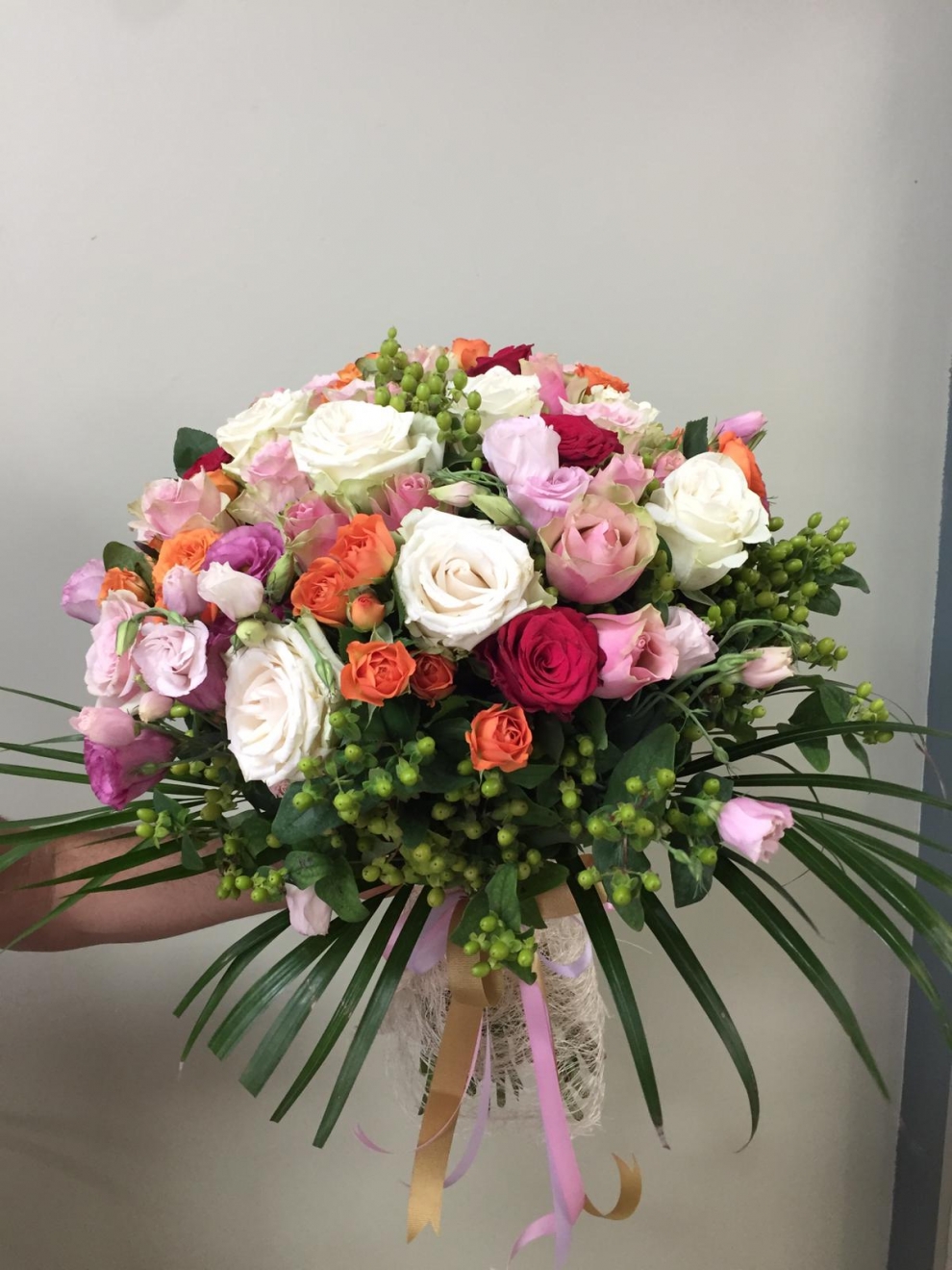 Karışık renk güller ,lisyantuslar ile derlenmiş şık bir buket