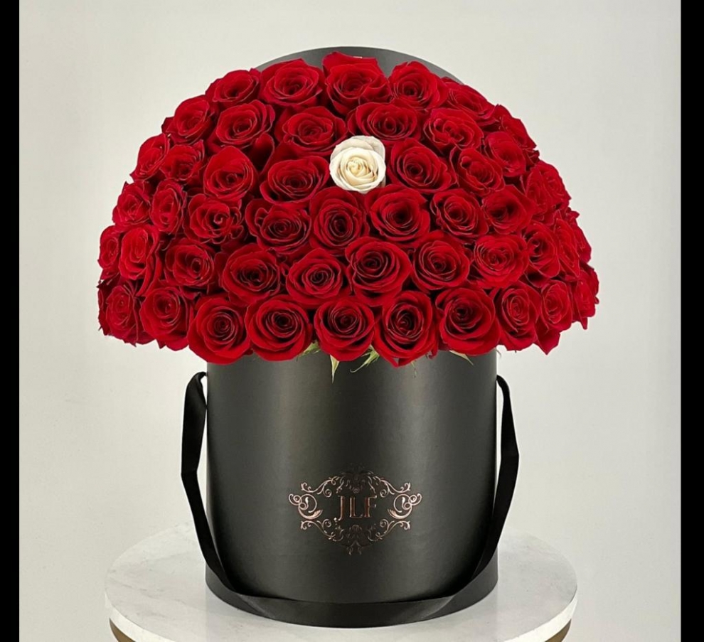 Siyah Kutuda Kırmızı Güller ve Tek Beyaz Gül